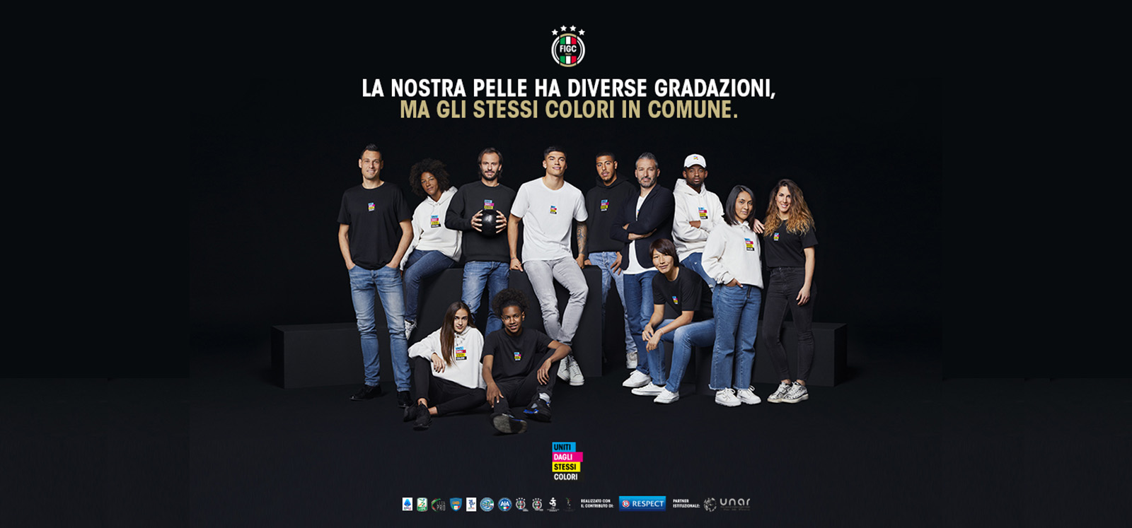 La campagna vede riuniti tutti i principali attori del movimento calcistico (Leghe, Componenti Tecniche, Arbitri, Settori e Divisioni).